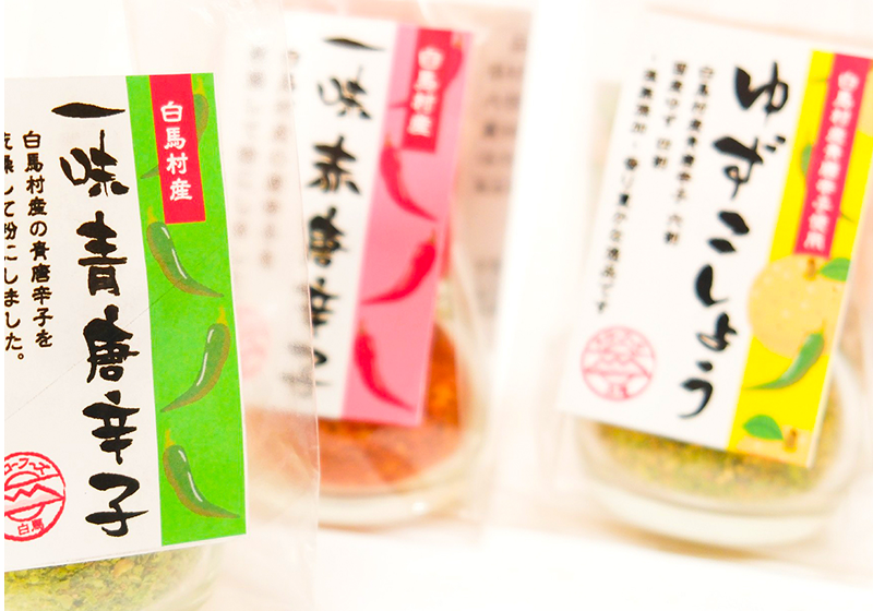 唐辛子やハーブを使った調味料セットや、昔ながらの知恵を生かした白馬村伝統の味噌玉で仕込んだ手作り味噌などをお楽しみください。