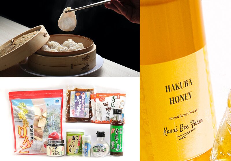 白馬の名産であるSPF豚を使った小籠包のセットや、白馬の美しい花から採取された国産はちみつ。地元産にこだわった青こしょう(青唐辛子)のセットなどが人気です。