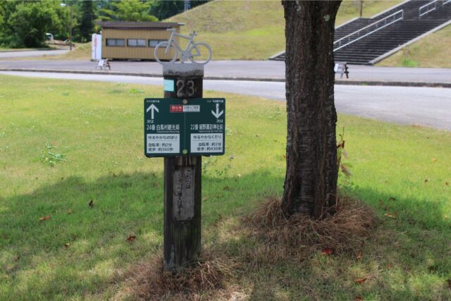 ジャンプ場入口のロータリーには、白馬小径23番の看板も。