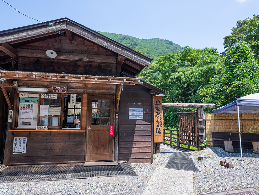 小谷村に近い姫川(Himekawa River)沿いから自然湧出している温泉です。2014年の計測では、水素イオン濃度は人間の血液の値とほぼ同等で、刺激が少なく肌にやさしいお湯です。