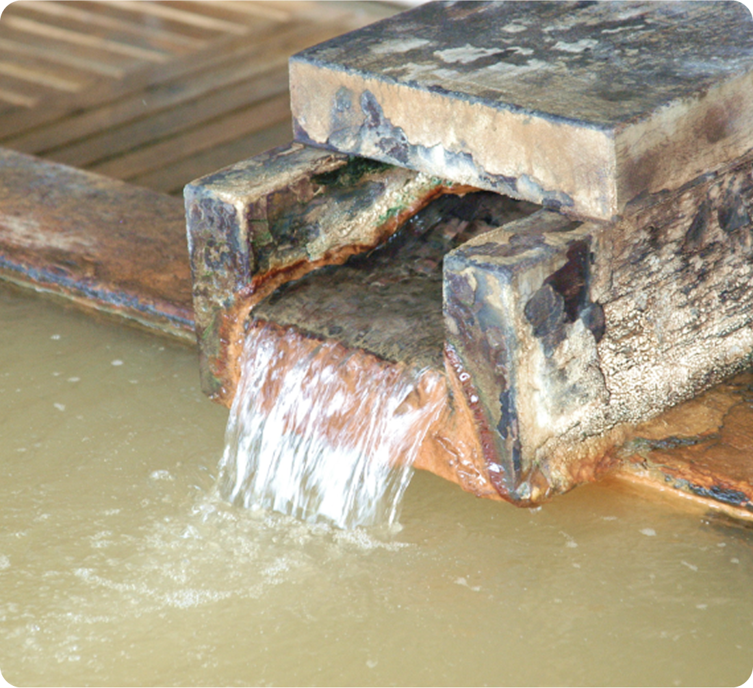 遠い昔に海の底だった北アルプス山脈が、地殻変動で隆起した時、活断層の地中深くに海水が封じこめられました。地下1,050mからくみ上げている湯が塩辛いのはそのためです。数ある白馬の温泉の中でも、他とは違う多くの成分を含み、毎分1,500リットルの豊富な湯量を誇ります。2,500万年の歴史と地球の鼓動を感じながら、天然源泉100%かけ流しの贅沢が楽しめます。
