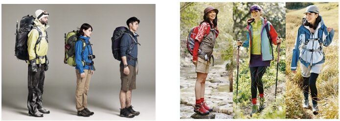 女性3人 山登りのファッション(トレッキングシューズ、登山用リュック)