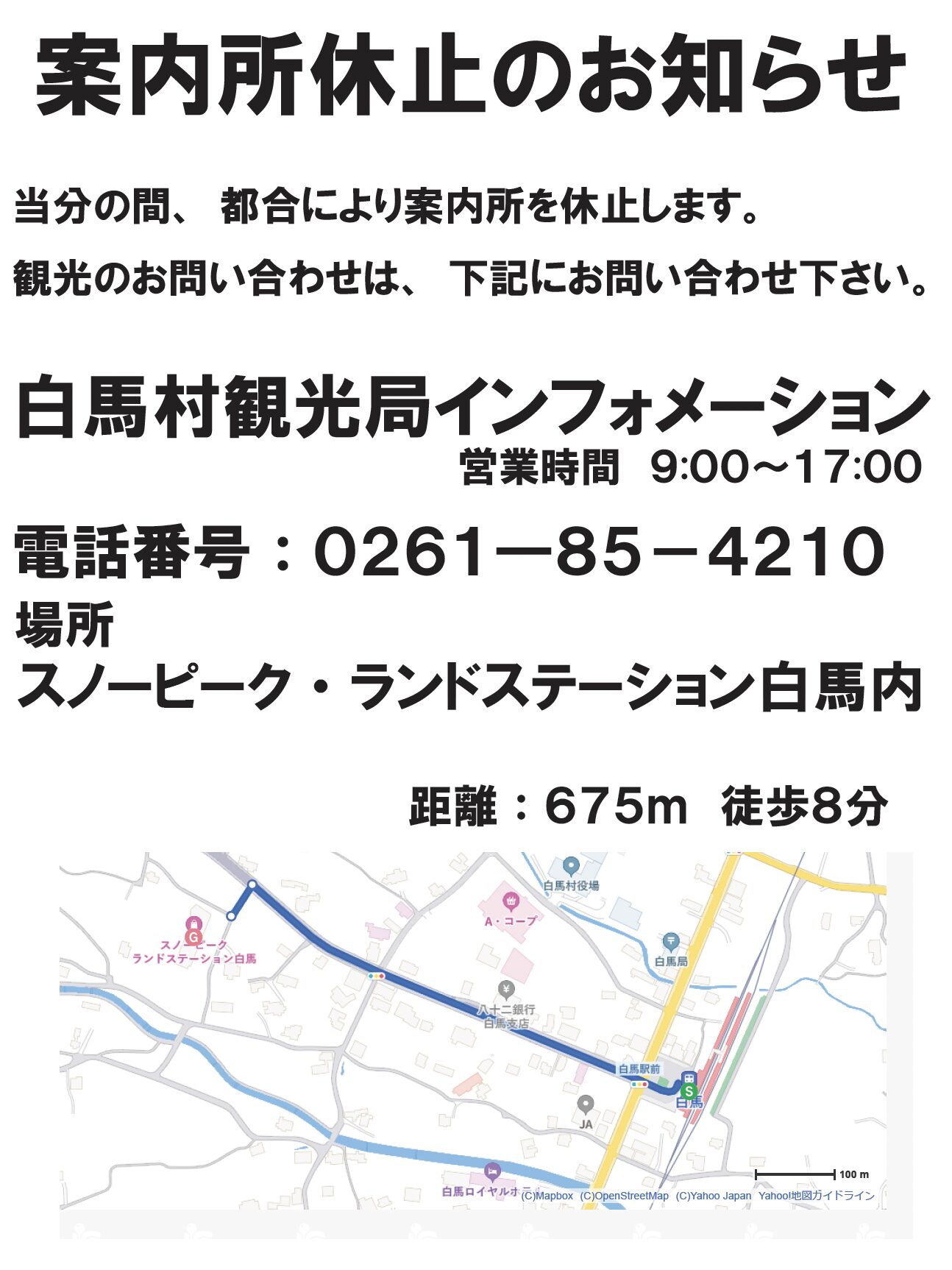 JR白馬駅内観光案内所休止のお知らせ