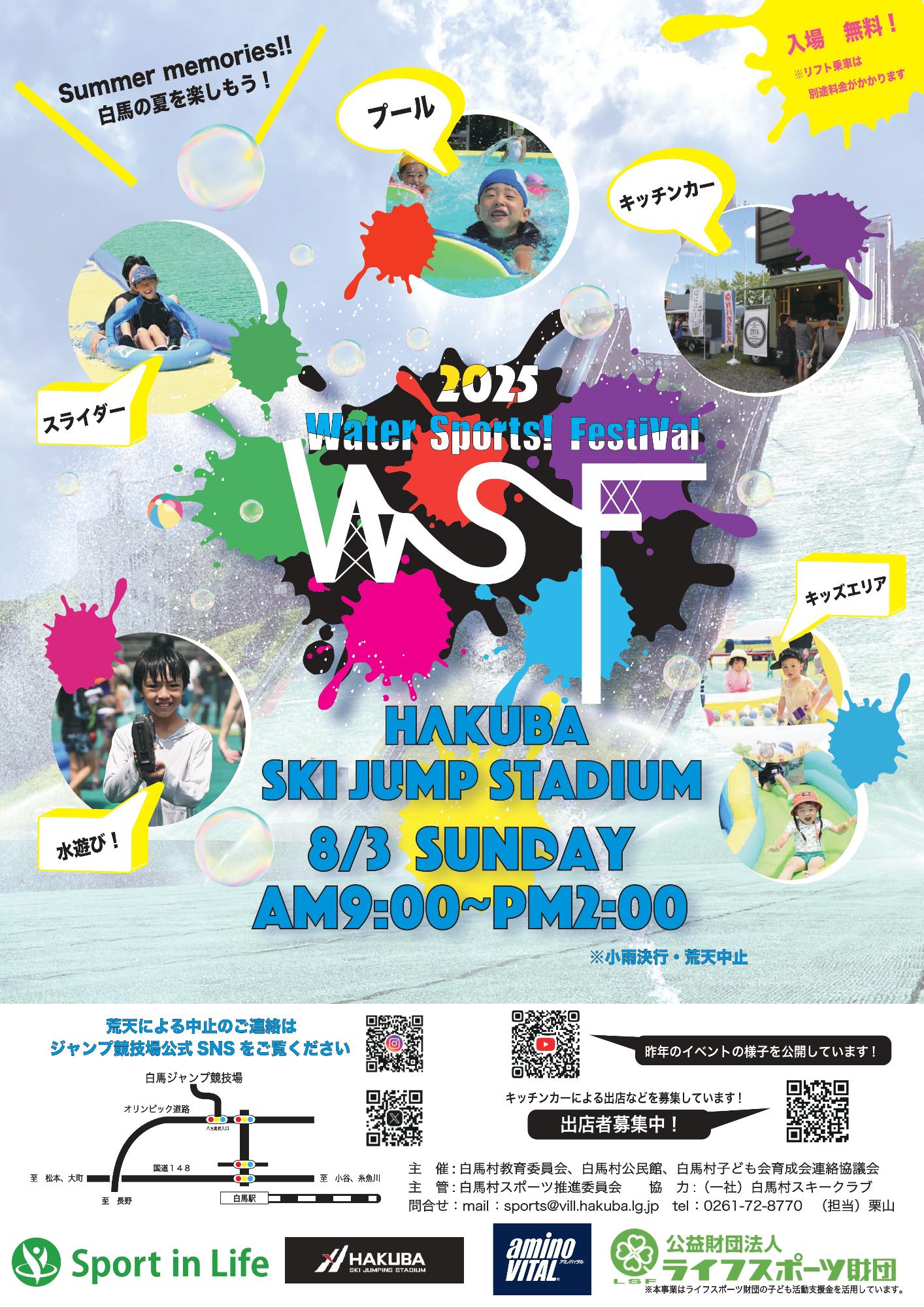 今年も白馬ジャンプ競技場で開催「ウォータースポーツフェスティバル」。無料常設の水遊び会場や体験プログラム、フラダンスのステージショー、キッチンカーの出店も!暑い夏に最高の1日を!