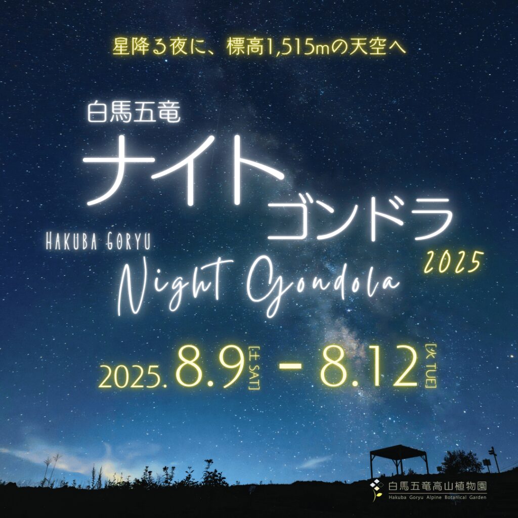 今年も白馬五竜の人気イベント「ナイトゴンドラ」が開催されます! 開催期間は 8月9日(金)〜12日(月・祝)の4日間。標高1,515mの涼しい山頂で、星空と美味しいディナーを楽しみませんか?