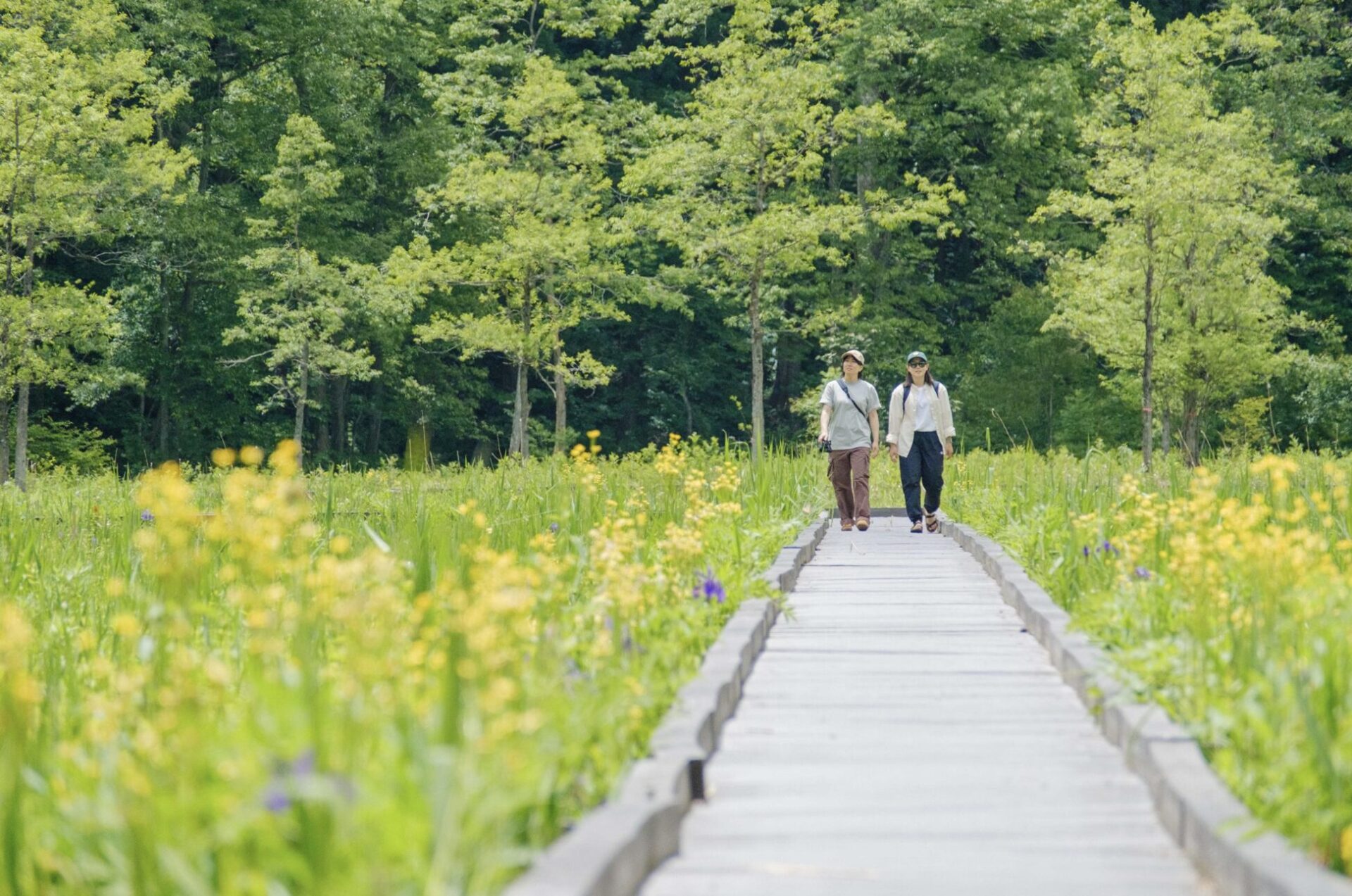 雪が解けると、春の訪れを待ちわびた花々が一斉に咲きだします。福寿草から始まり、初夏を彩るカキツバタやトキソウ。この地域は標高750mながら、高層湿原が広がり学術的にも貴重な動植物が多く見られる所です。姫川源流の涌き水は昭和60年に環境庁から日本の名水百選にも指定された美しい水の源です。コースはほとんど平地で、よく整備された道はどなたにも安全に楽しめます。動植物に詳しい白馬マイスターと一味ちがう自然観察を楽しんでみませんか。