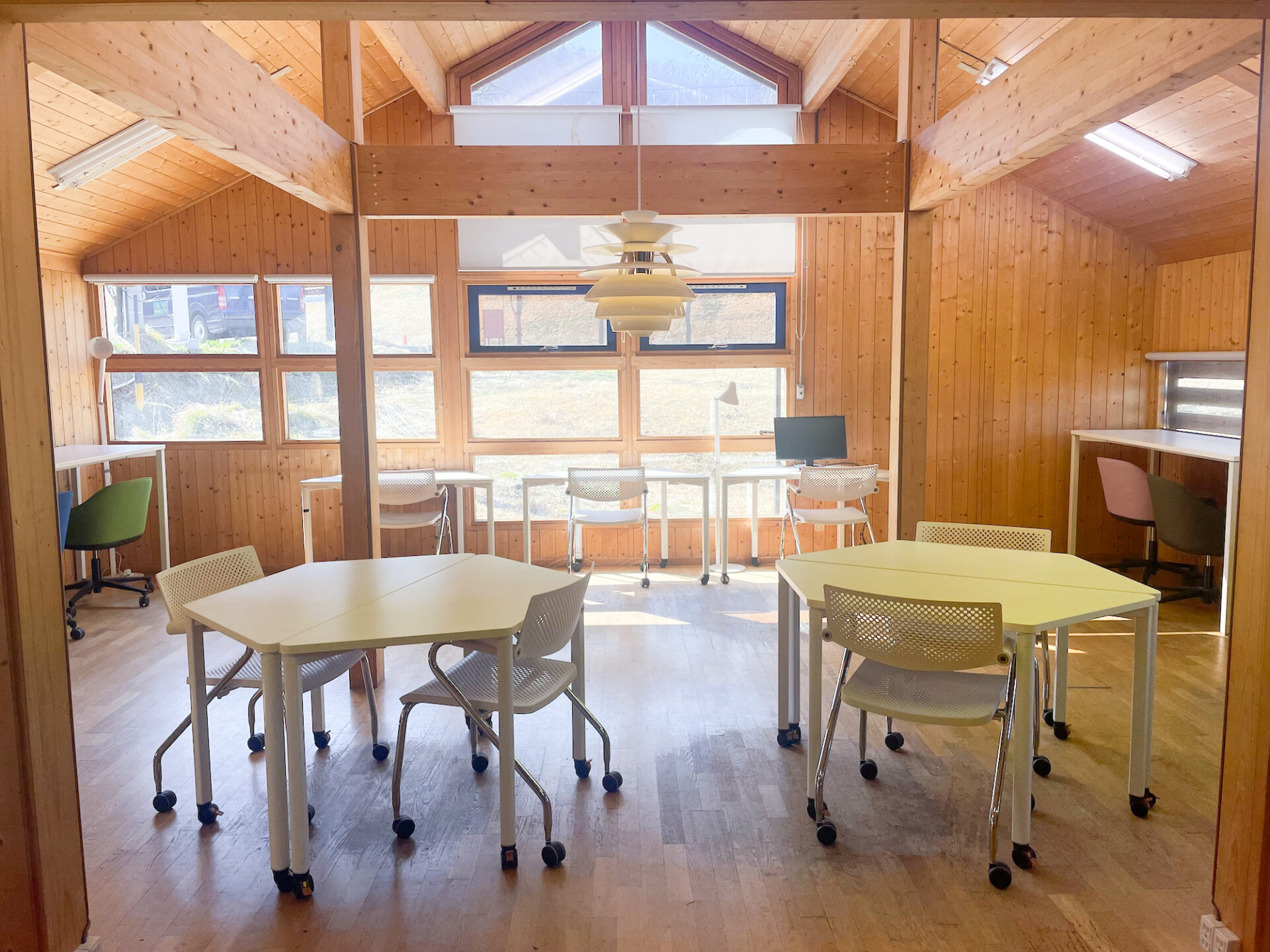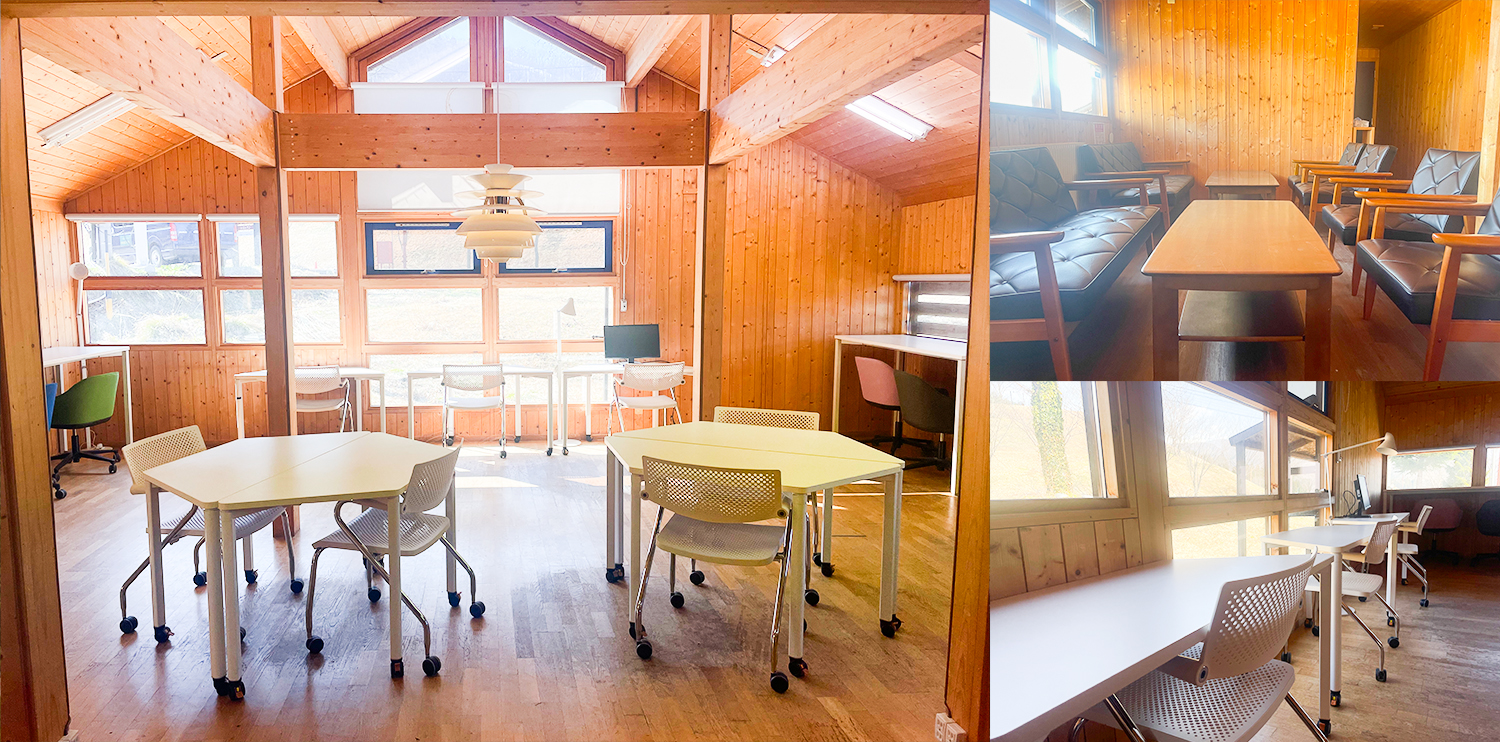 白馬ジャンプ競技場の麓、長野オリンピック後にノルウェー王国から寄贈された建物を利用した、無料のコワーキングスペース、イベントなどで使えるホール、個室2部屋ある施設です。 コワーキングスペースでは、電源、Wi-Fi、ディスプレイ、テーブル、いすなどが無料で利用できます。 観光の合間に、気分転換したいときに、自然豊かな景色を見ながらなど、お気軽にお立ち寄りください。